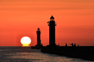 この日は釣り人も多く、達磨夕日と一緒に撮れました。
